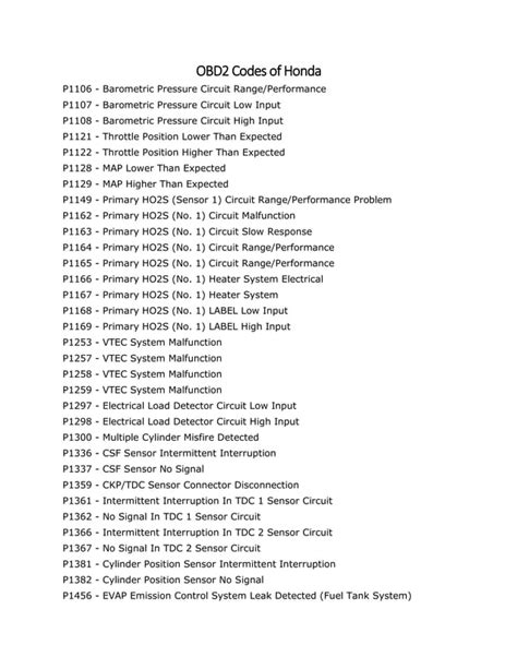 Read Online honda obd2 code list PDF